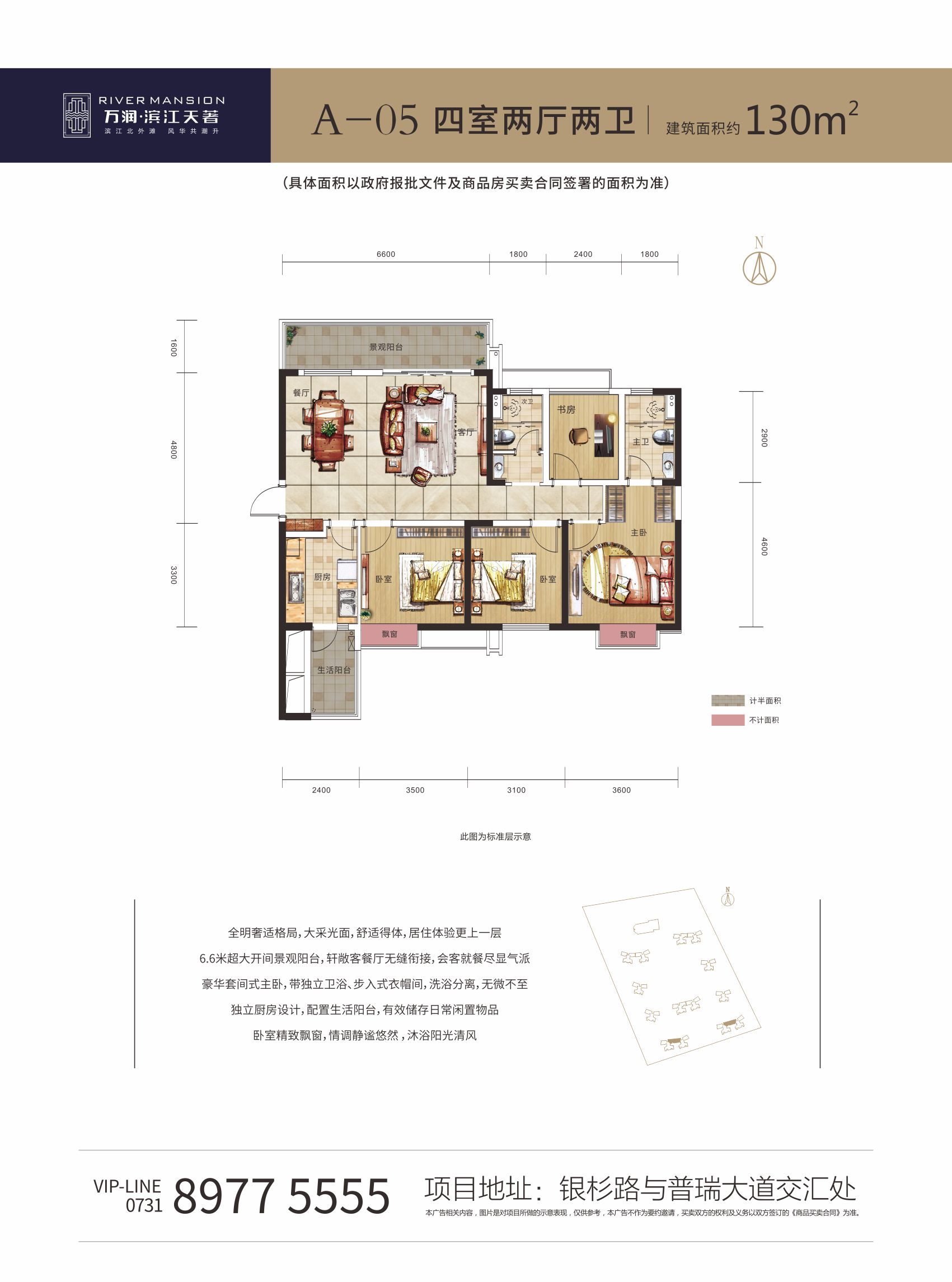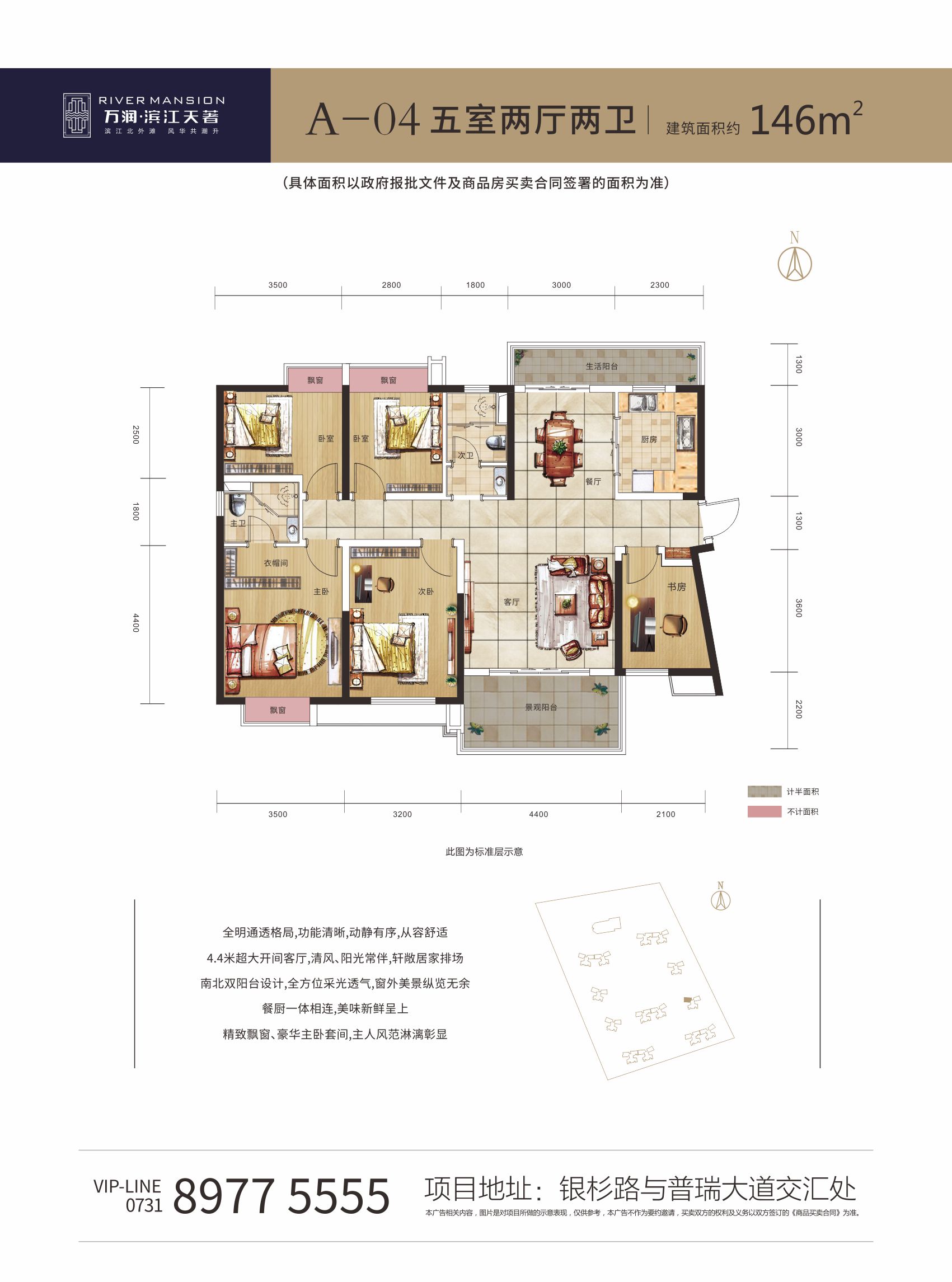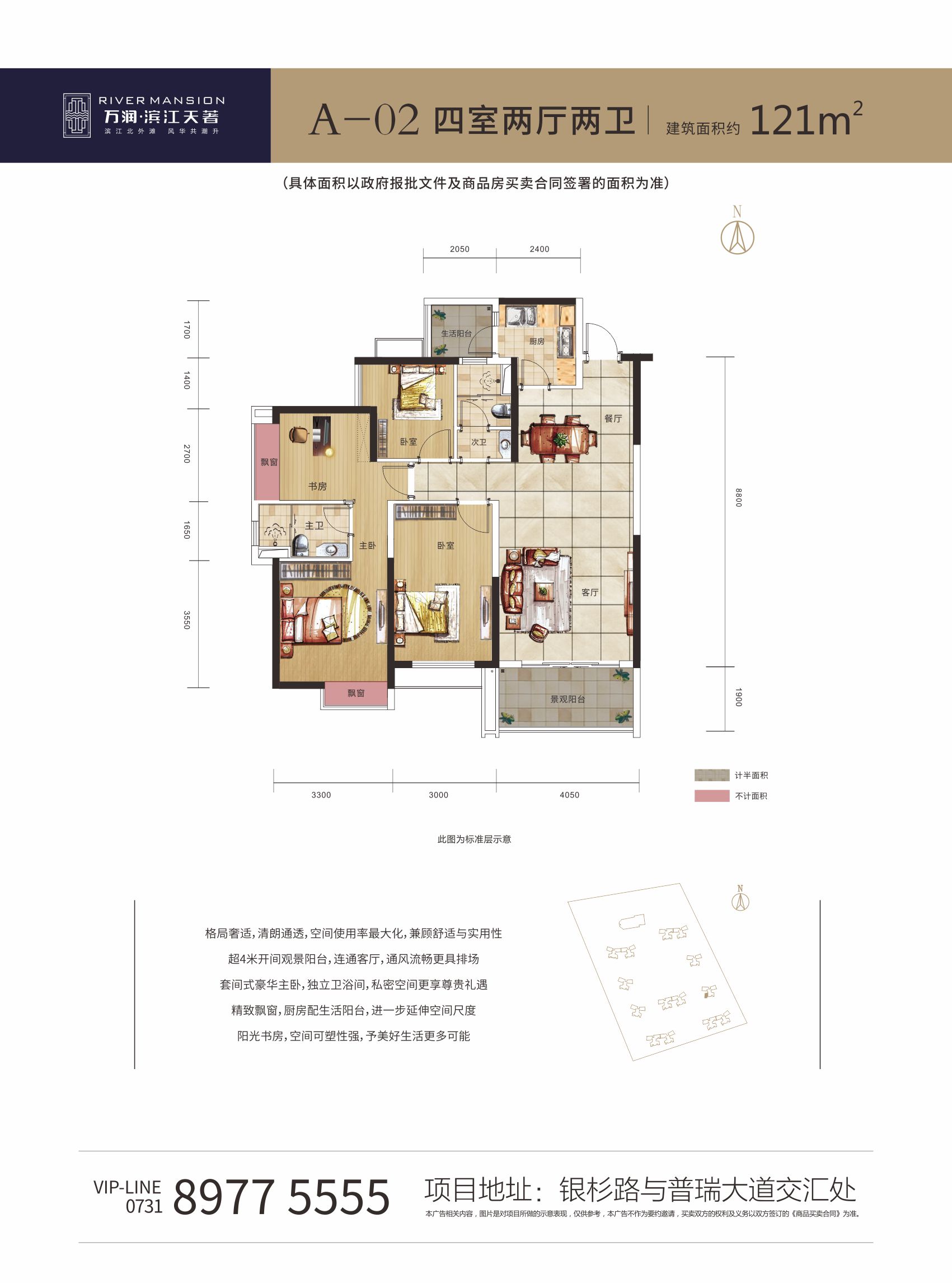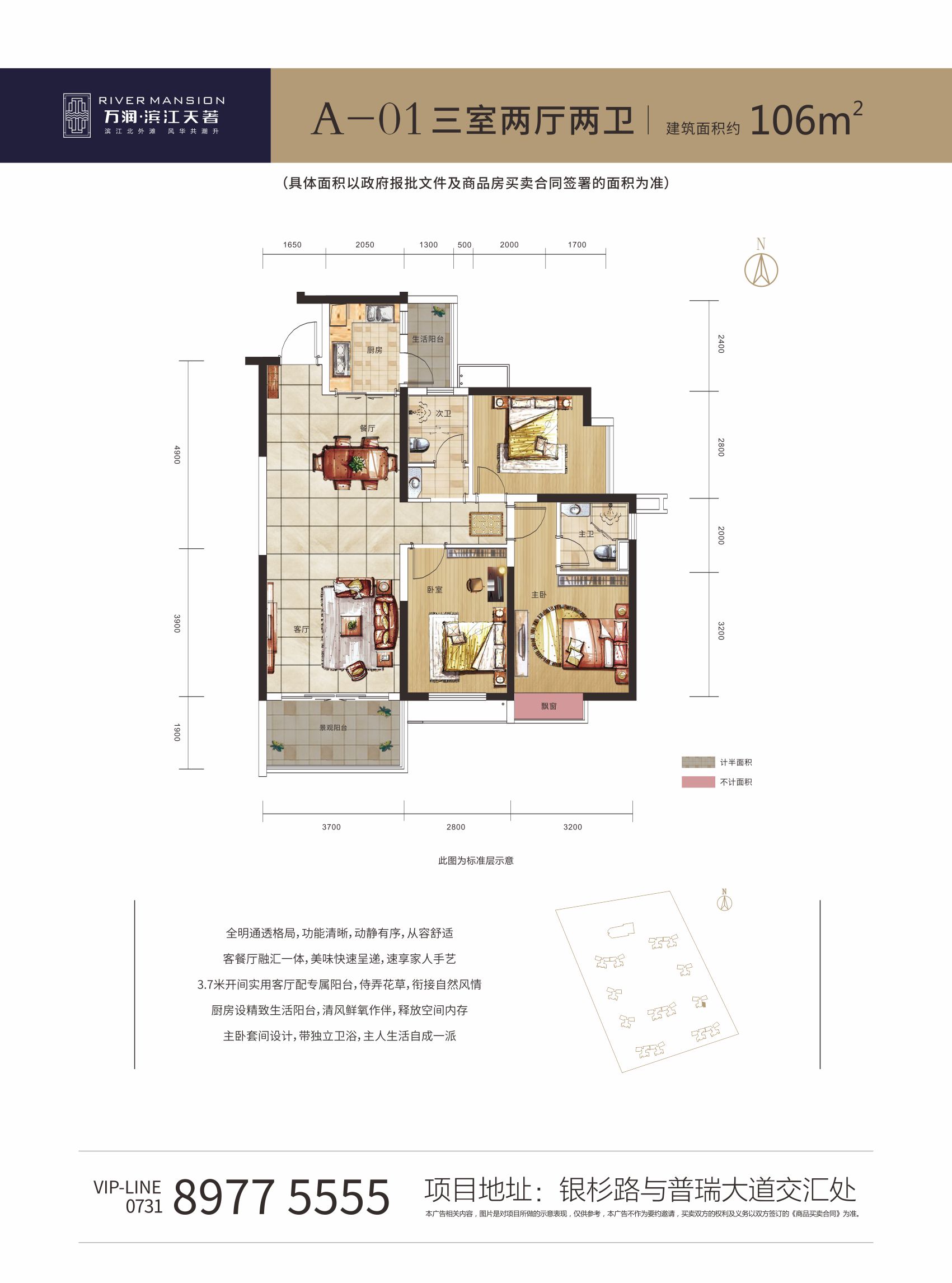 全明户型,采光充盈,双向阳台,谱写人与自然的生活序曲 奢适套间式主卧设计,配置专属卫浴、衣帽间、豁达居家感受 北向5.1米开间阔景阳台,衔接阔厨房,餐厅,月光美景佐餐 三卧一体,动静分区,保证私人时光不被打扰 配生活阳台,拓展生活空间