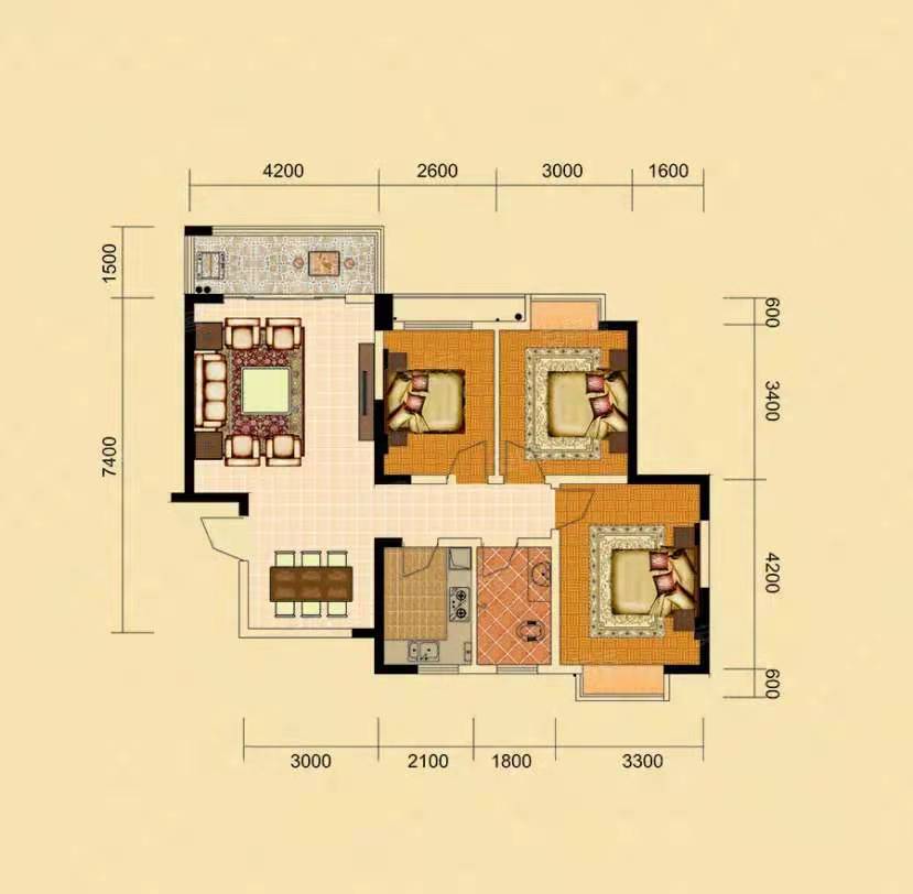 楚天世纪城西苑3室2厅1厨2卫 74.1万起