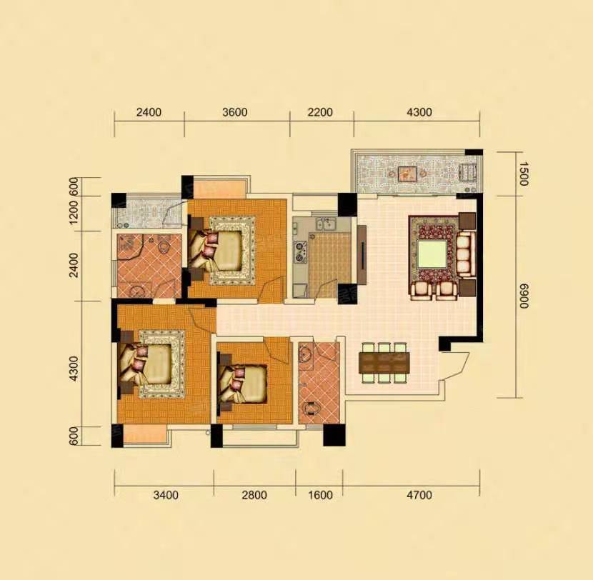 楚天世纪城西苑3室2厅1厨2卫 66.95万起
