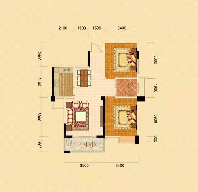 楚天世纪城西苑2室2厅1厨1卫 55.9万起