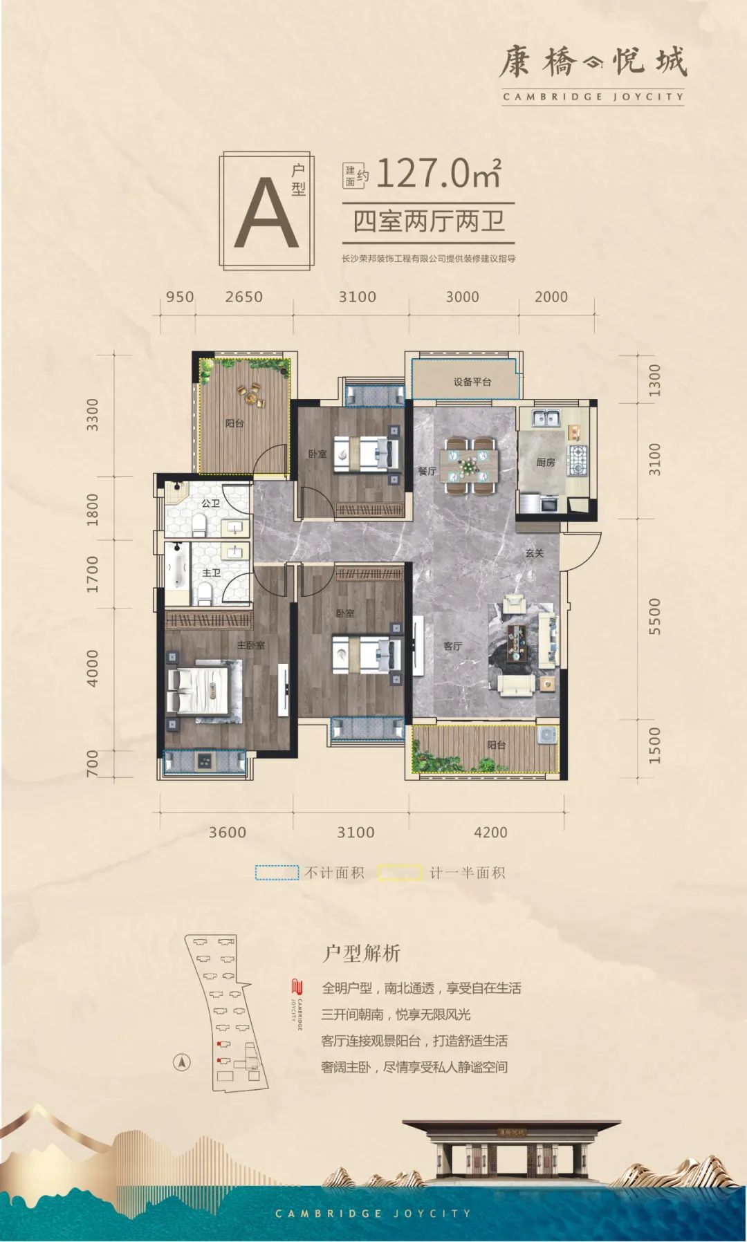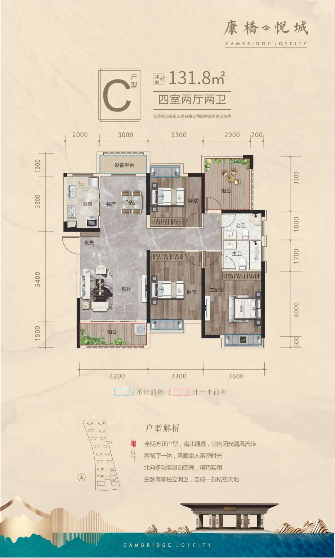 纯南北通透、户型方正,得房率高