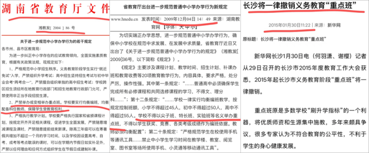 2015年:长沙市教育局宣布义务教育阶段"重点班"一律撤销,推进依法治校。