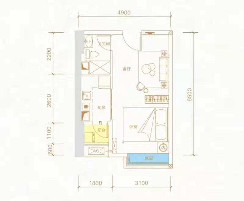 • 户型:1室1厅1厨1卫