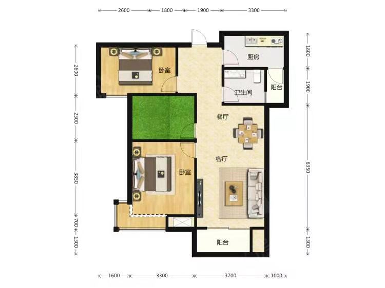 • 户型:2室1厅1厨1卫